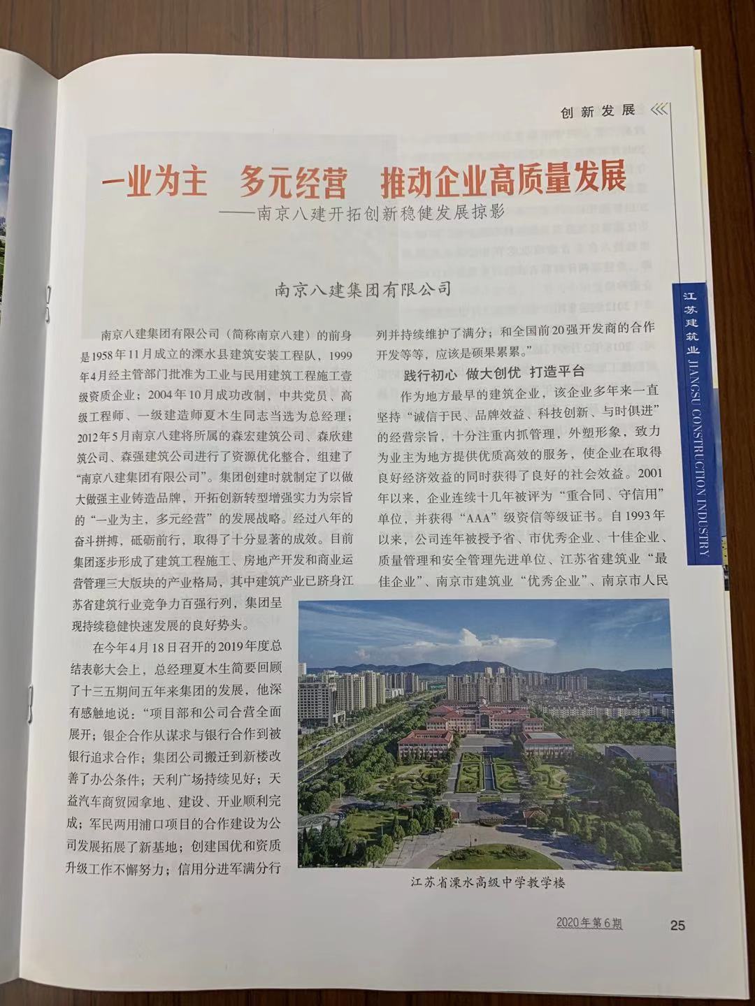《一業(yè)為主 多元經(jīng)營 推動企業(yè)高質(zhì)量發(fā)展》發(fā)表在2020年6月《江蘇建筑業(yè)》雜志上。 -