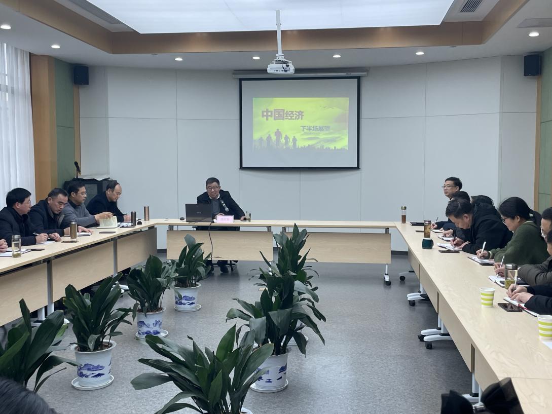 2023年2月10日下午公司特邀浙江紹興律派企業(yè)管理公司董事長潘躍新律師在公司一樓會議室開展了《中國經(jīng)濟(jì)下半場展望》專題講座 -